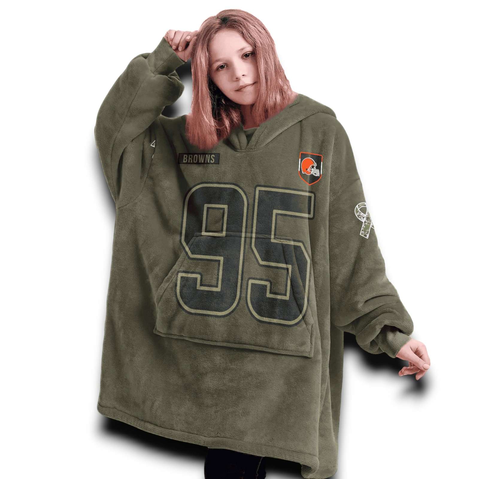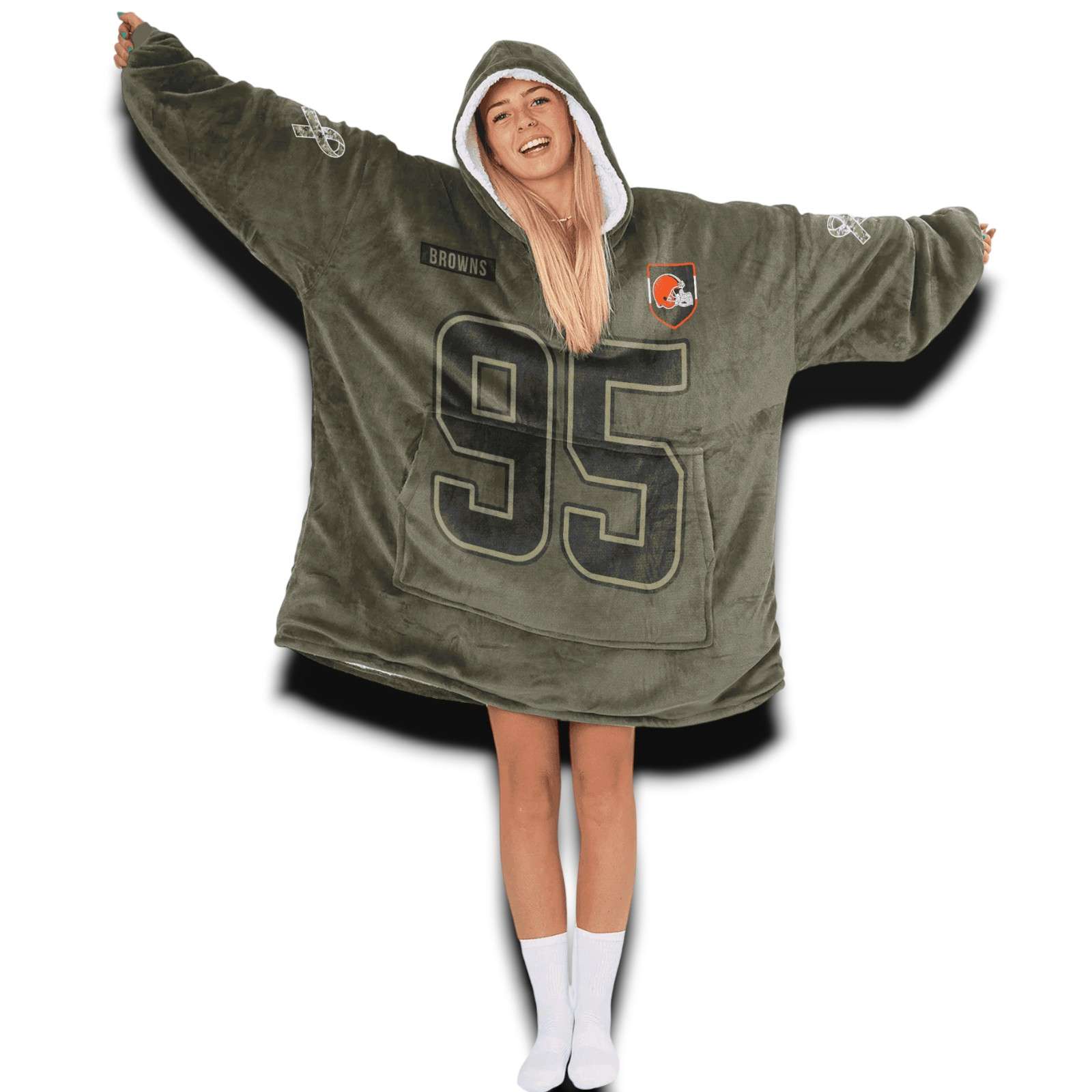 Beat The Cold With The Browns Garrett 95 Olive Salute To Service Football Blanket Hoodie