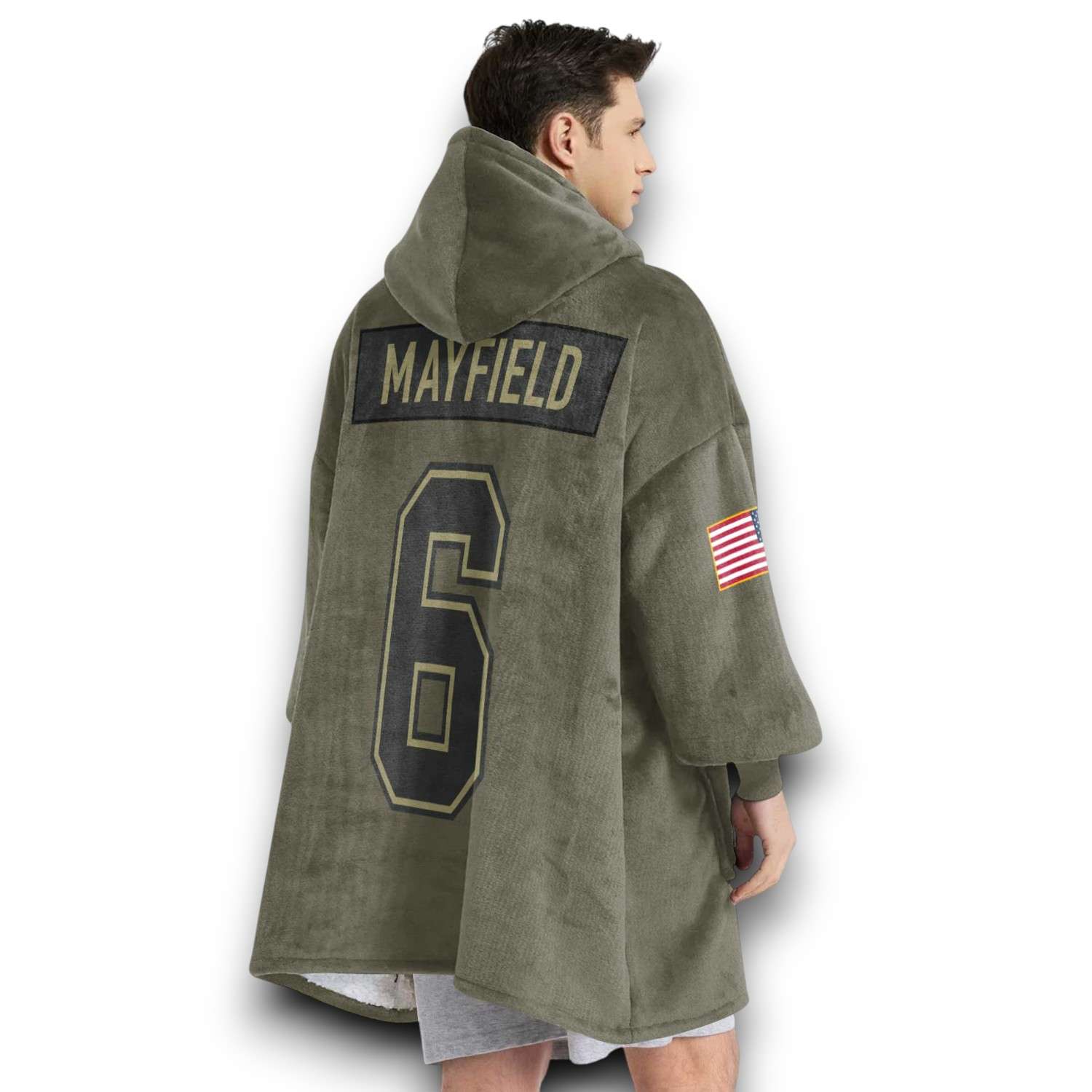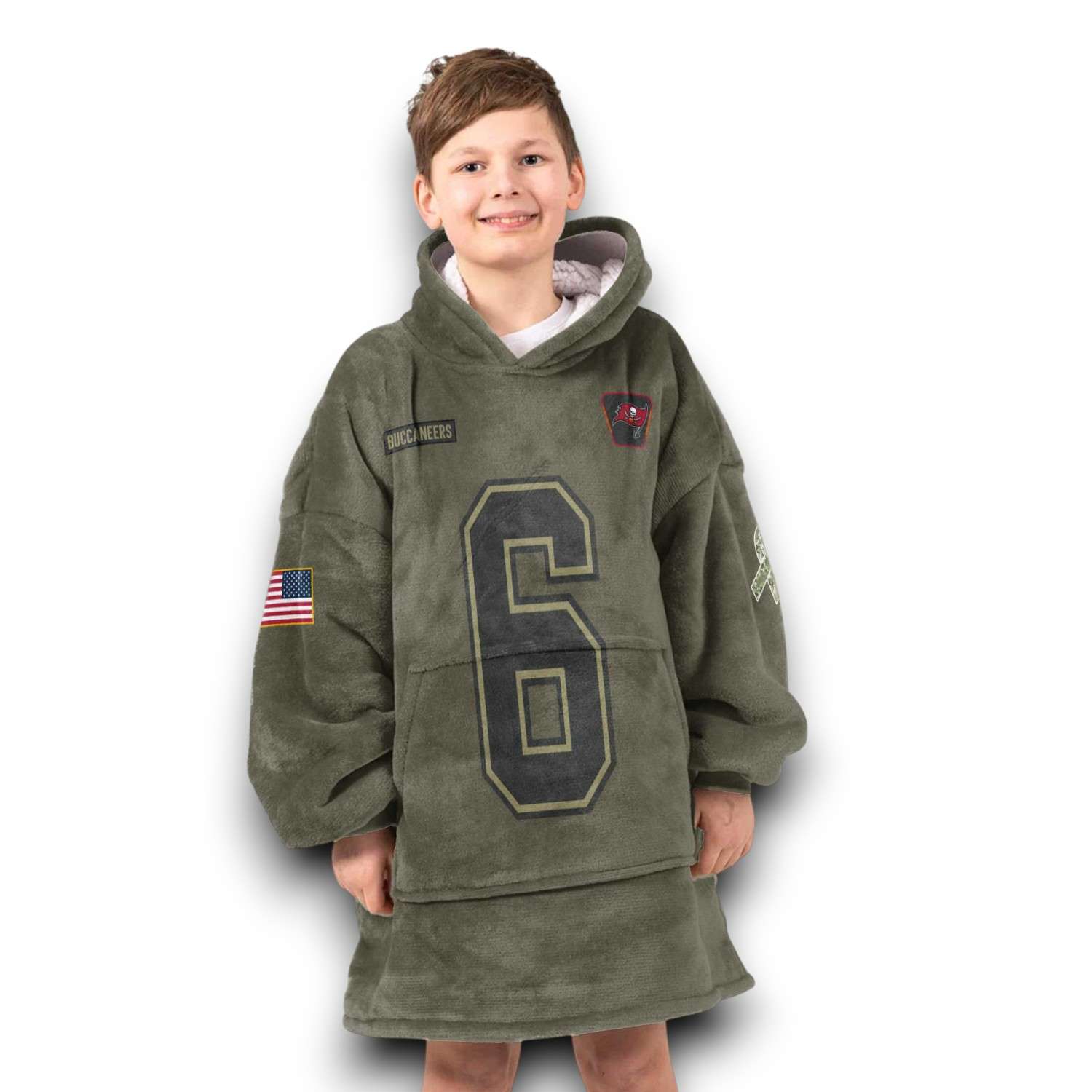 Buccaneers Mayfield 6 Olive Salute To Service Football Blanket Hoodie – Warming Warrior Spirit