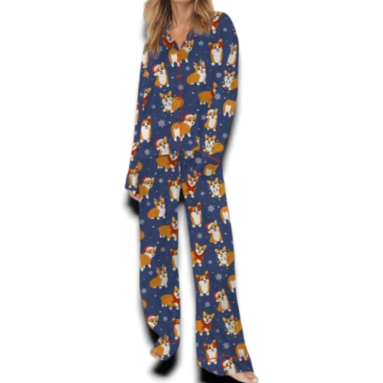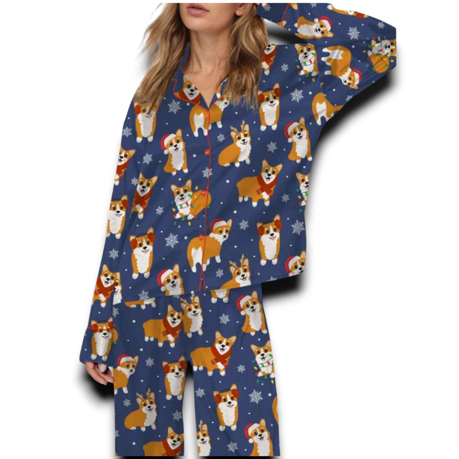 Corgi Christmas Silky Satin Pajama Set – Silky & Cute Christmas Pajamas