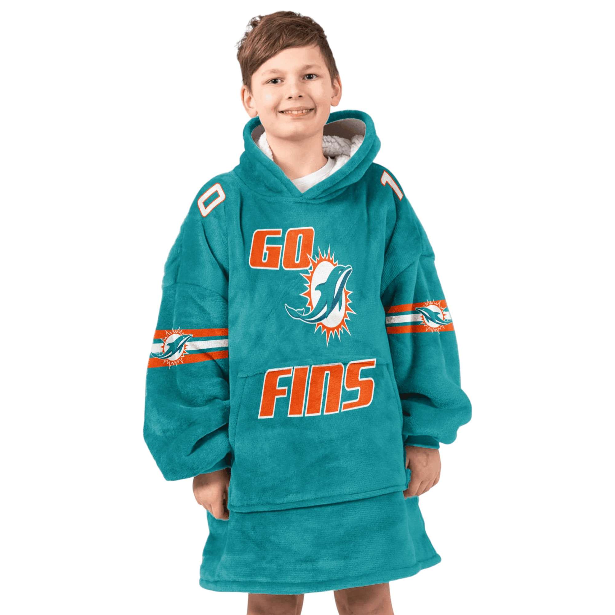 Welcome Winter In Miami Style: Dolphins Go Fins Hill 10 Football Unisex Blanket Hoodie