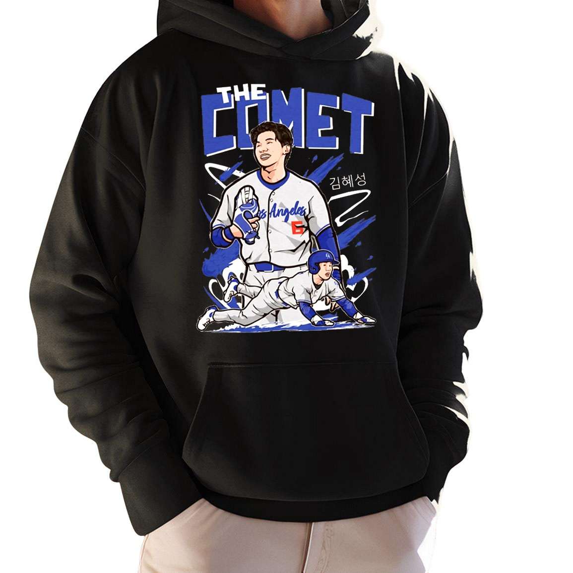 Hyeseong Kim The Comet Dodgers 2025 Wild Card Series Shirt is more than just a souvenir, it’s a stylish statement of baseball passion and admiration for rising superstar Kim Hye-Seong. Designed to commemorate his explosive performance in the 2025 Wild Card Series, this shirt is a must-have for any die-hard Dodgers fan.