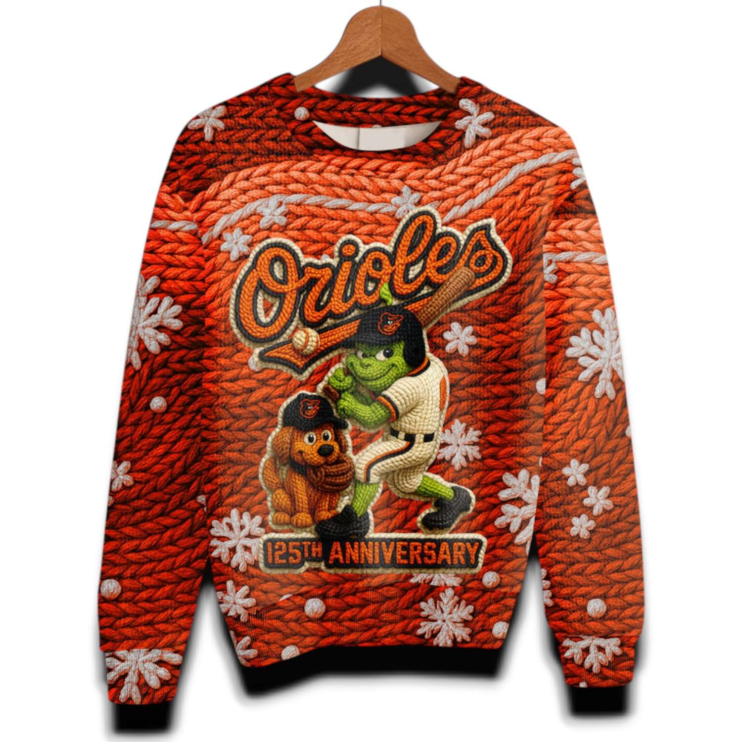 The Perfect Choice For Fans: Orioles 125th Anniversary Grnch Ugly Christmas Sweater 2025
