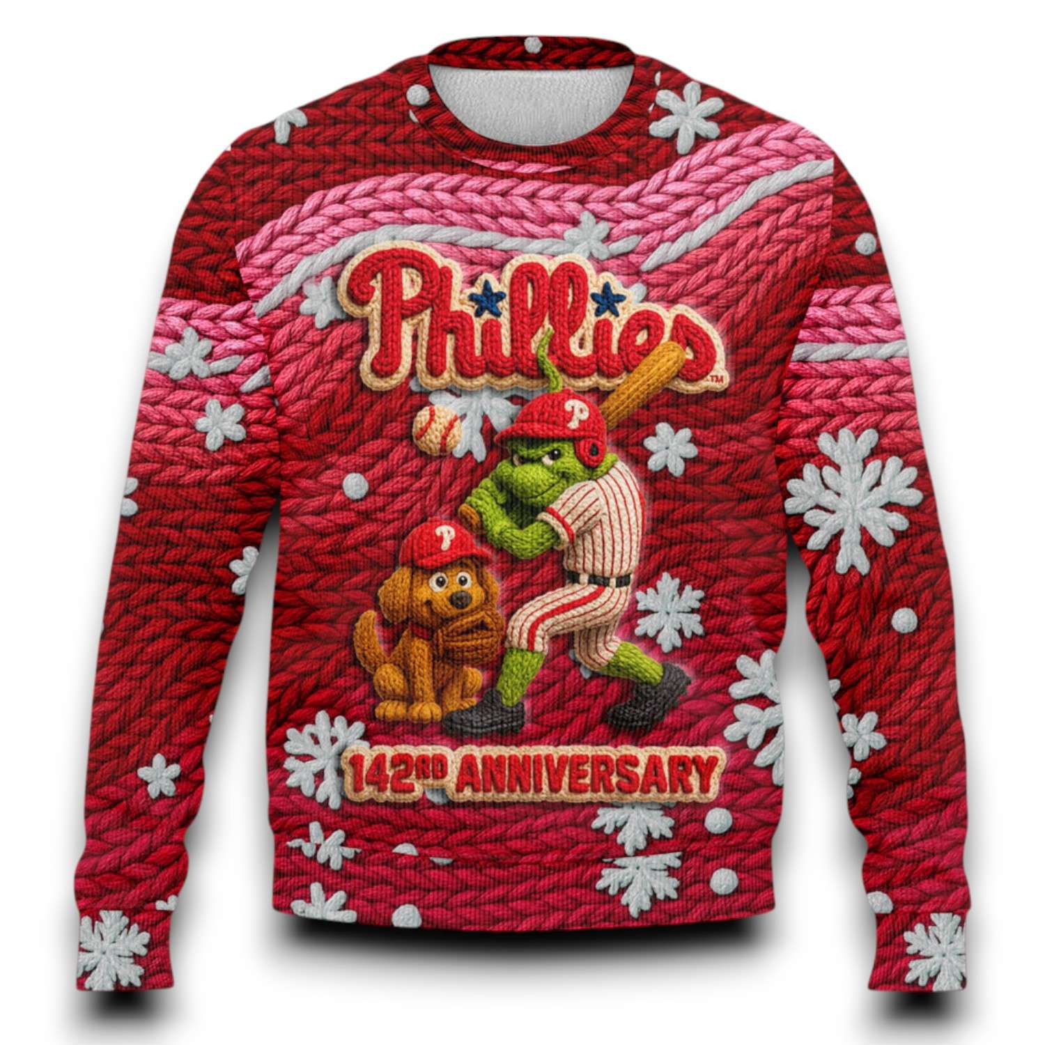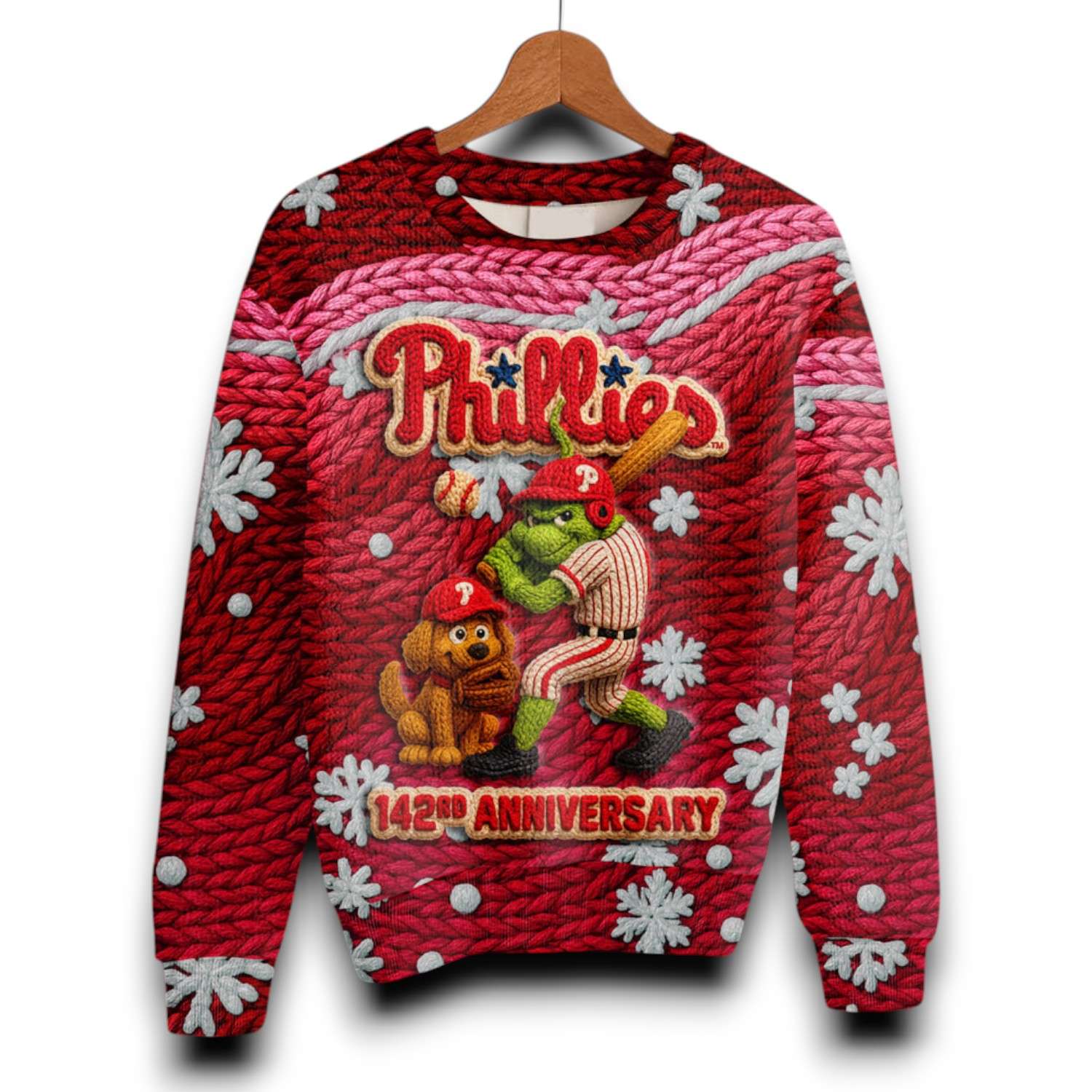 Phillies 142th Anniversary Grnch Ugly Christmas Sweater 2025: Fun, And Great For The Whole Family!