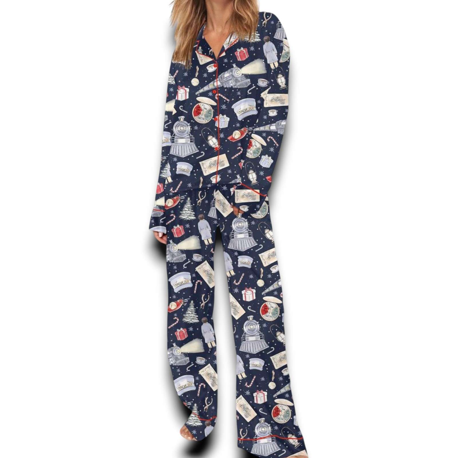 The Polar Express Christmas Silky Satin Pajama Set For Women is a spiritual gift, a symbol of faith and warmth during the Christmas season. Put on this pajama set to feel comfortable, to believe in miracles, and to spread the spirit of conquering the festive season. This is not just an outfit – this is a journey, and you are a special passenger on the Polar Express train.