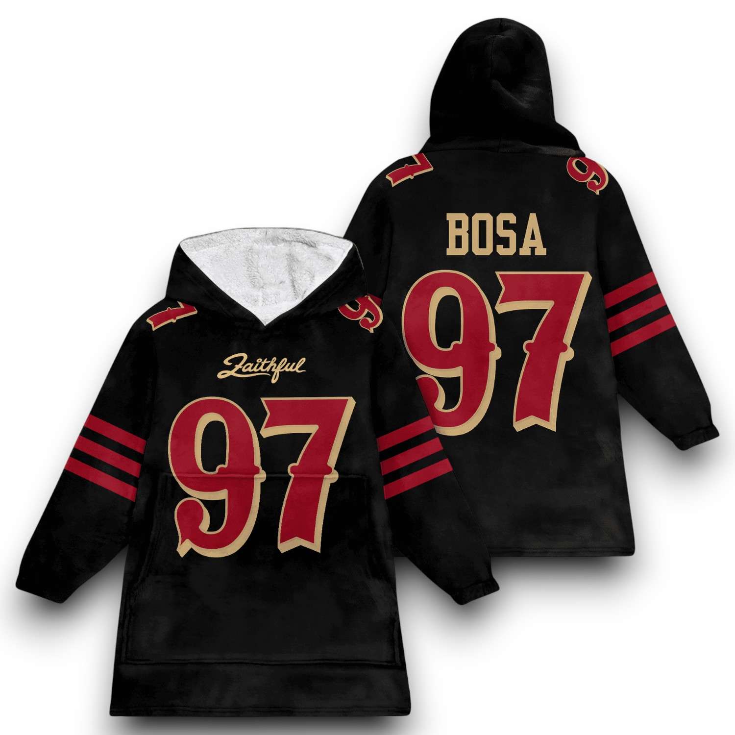 Enjoy The Undying Faith With The SF 49ers Faithful Bosa 97 Football Unisex Blanket Hoodie