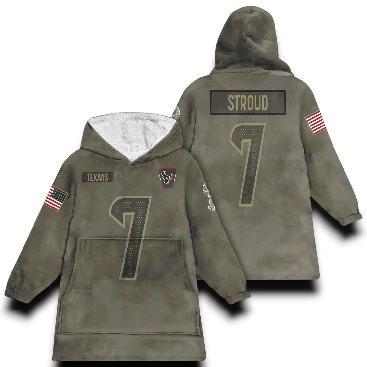 Texans Stroud 7 Olive Salute To Service Football Blanket Hoodie: Strong Olive Style, Ultimate Coziness