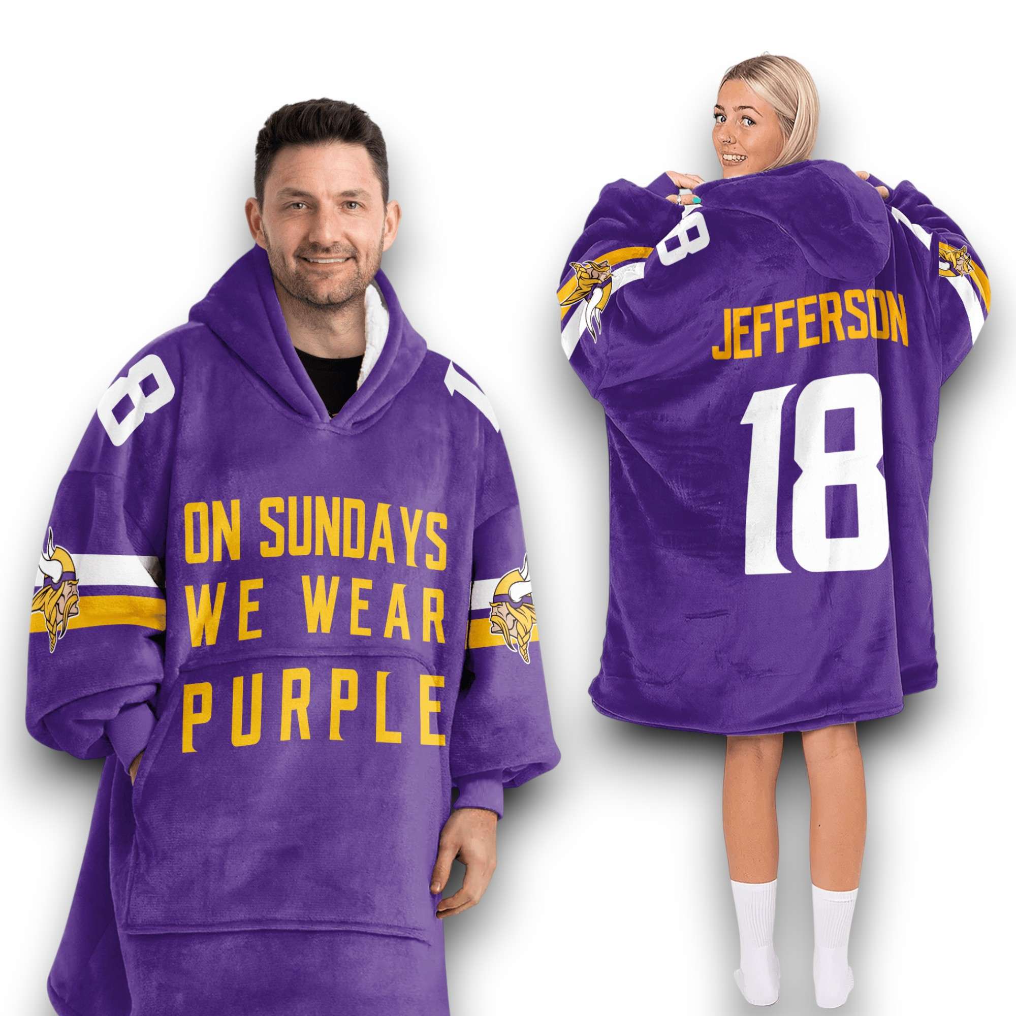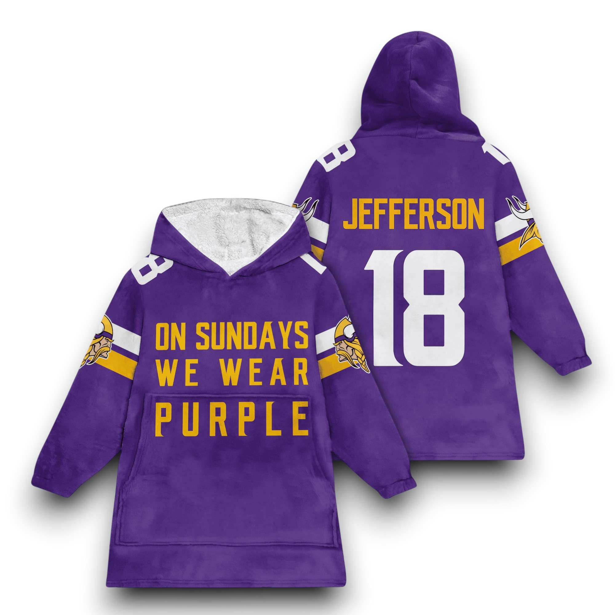 Vikings On Sundays We Wear Purple Jefferson 18 Football Unisex Blanket Hoodie: A Stylish Purple Love Statement